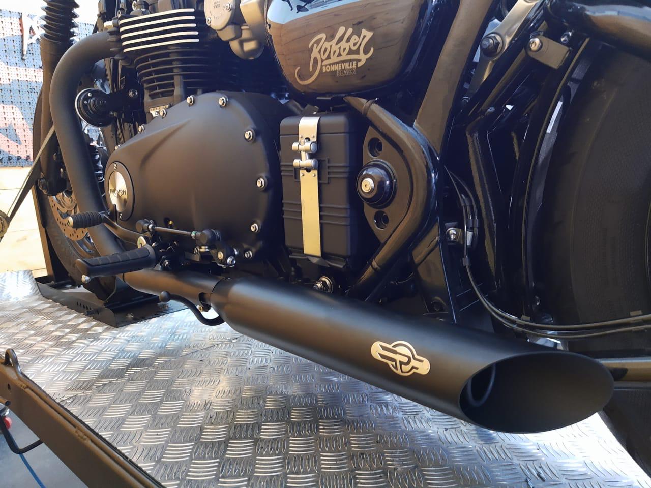 Revolucionando o mercado de sistemas de escapamento para motocicletas, a Customer Motos oferece um sistema exclusivo nas ponteiras para Triumph Bobber: Som alto na cidade, garantindo sua segurança e ronco esportivo, e um som agradável – mais baixo – acima dos 90km/h. Isso só é possível graças a toda tecnologia embarcada em seus abafadores com escamas rotativas. Só a Customer oferece 2 anos de garantia.